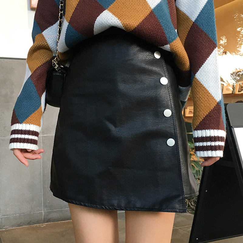 / 時尚高腰小皮裙秋裝女2018新款韓版不規則半身短裙學生A字黑裙子