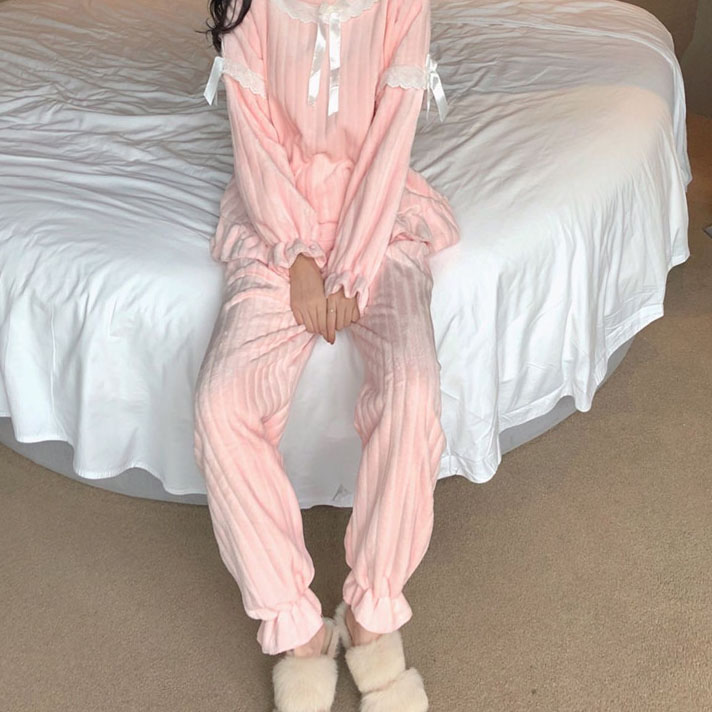 2018新款韓版甜美可愛學院風秋冬加絨加厚舒適睡衣睡褲家居服套裝