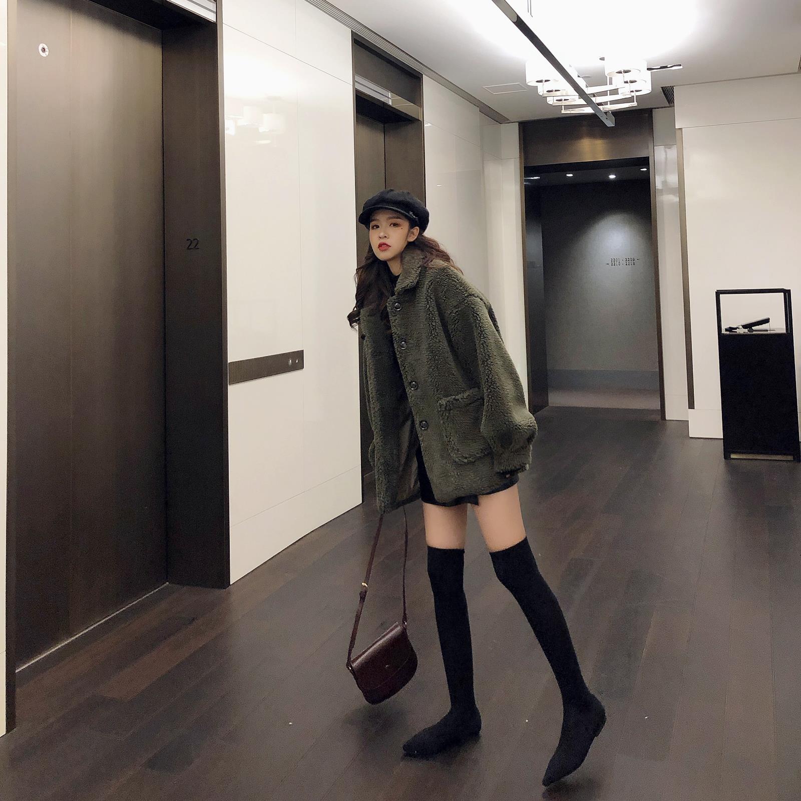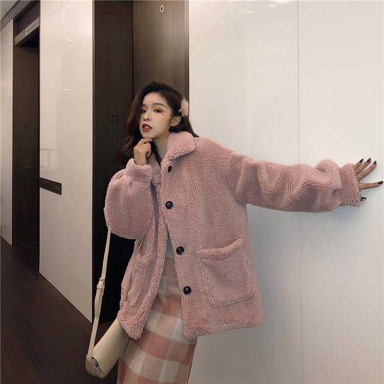 復古溫柔網紅百搭慵懶立領加厚羊羔毛外套女冬裝2018新款棉衣棉服