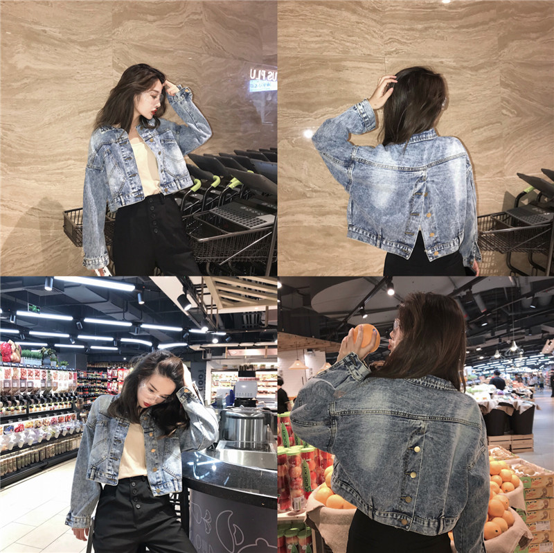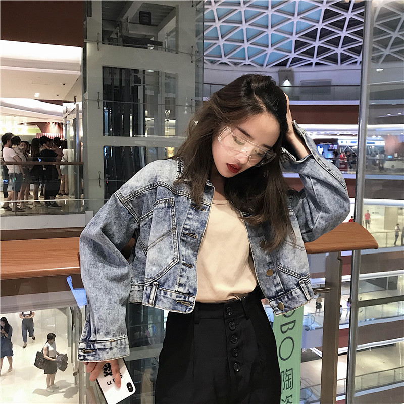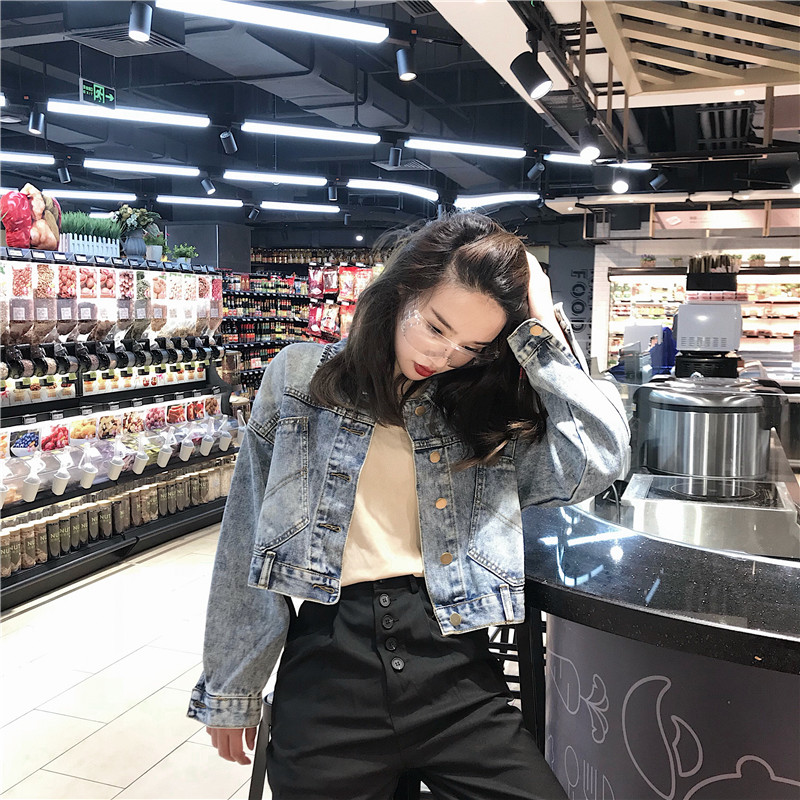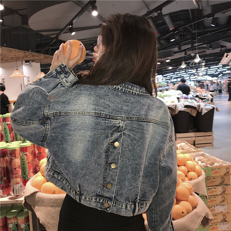 / 韓版新款復寬松復古氣質時尚短款牛仔外套大口袋子后背夾克上衣女