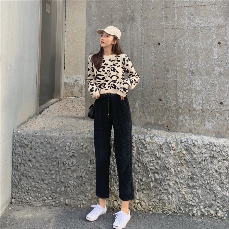 褲子女韓版2018秋冬新款松緊時尚百搭高腰九分煙管蘿卜褲哈倫褲潮