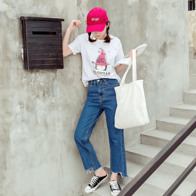/ 夏季新款韓版時尚寬松直筒褲流蘇九分牛仔褲女學生休閑褲子潮