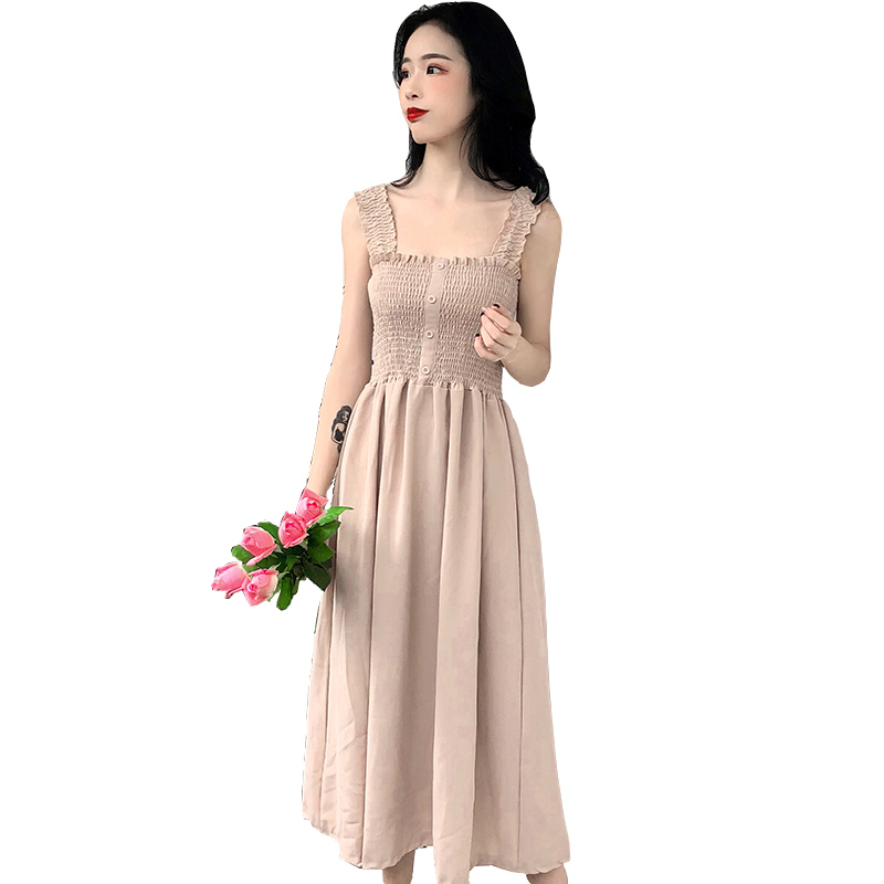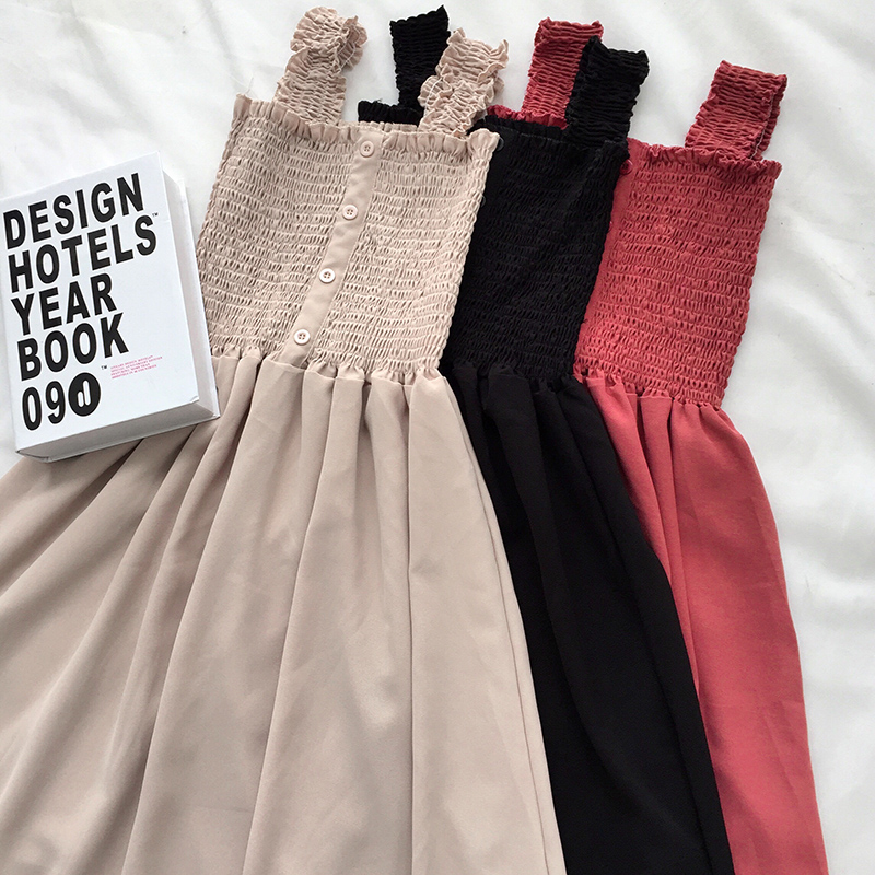 2018女夏裝新款韓版高腰顯瘦黑色吊帶連衣裙氣質無袖A字中長裙子
