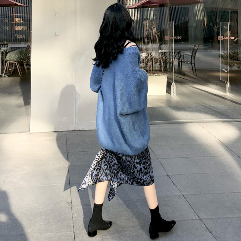/ 御姐套裝女秋冬新款V領寬松慵懶風毛衣針織外套豹紋吊帶連衣裙子
