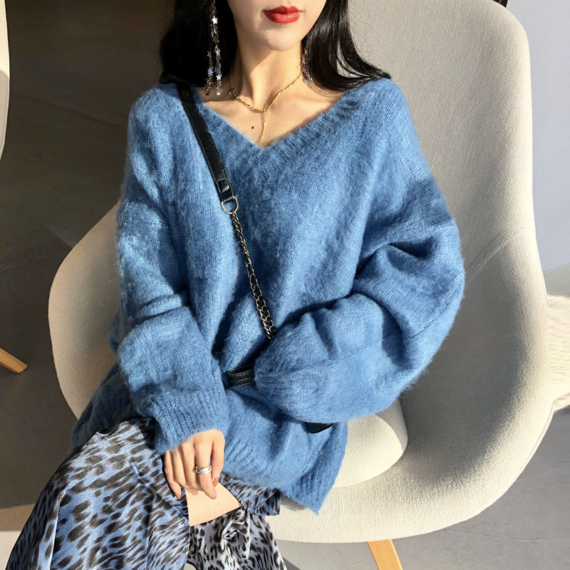 御姐套裝女秋冬新款V領寬松慵懶風毛衣針織外套豹紋吊帶連衣裙子