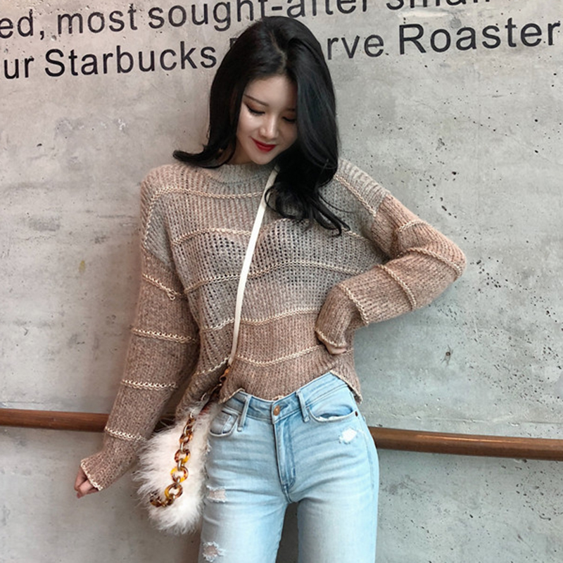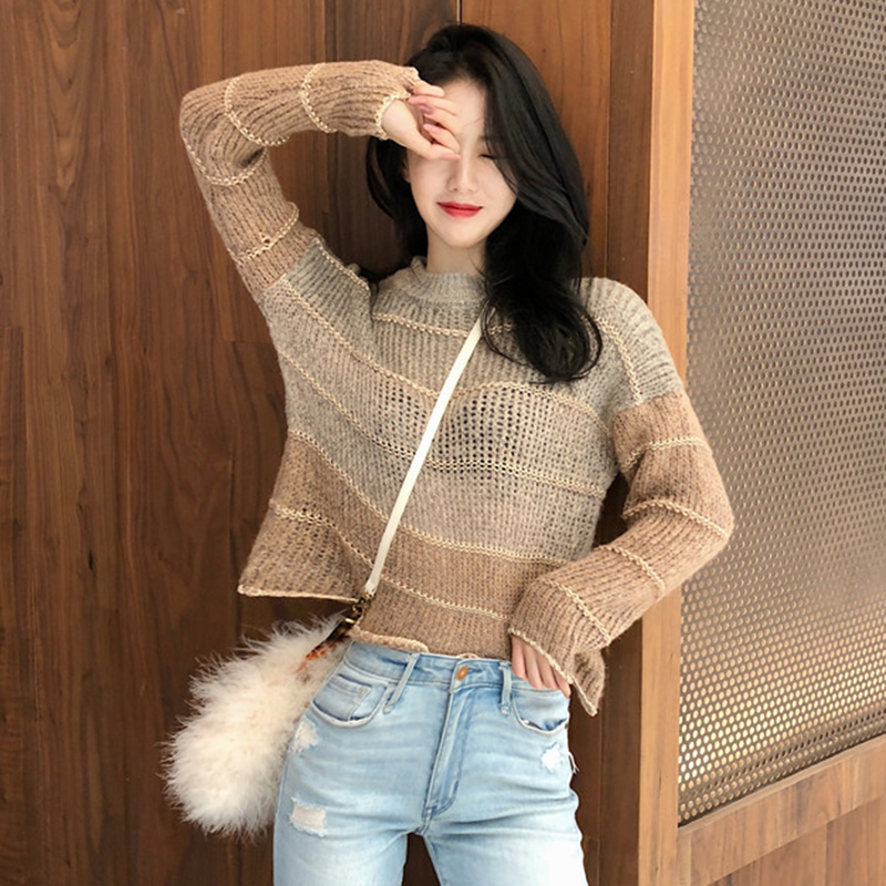 / 寬松復古氣質漸變針織衫女秋冬裝新款慵懶風毛衣外套休閑長袖上衣