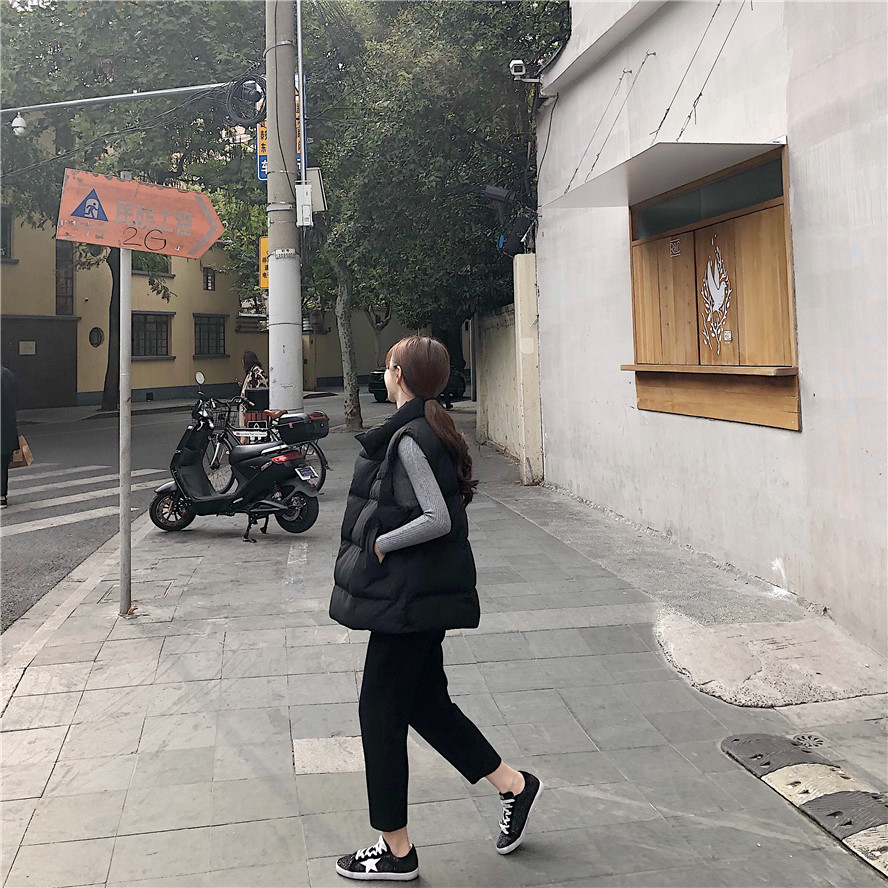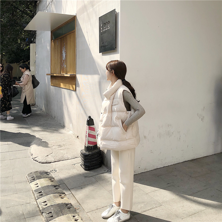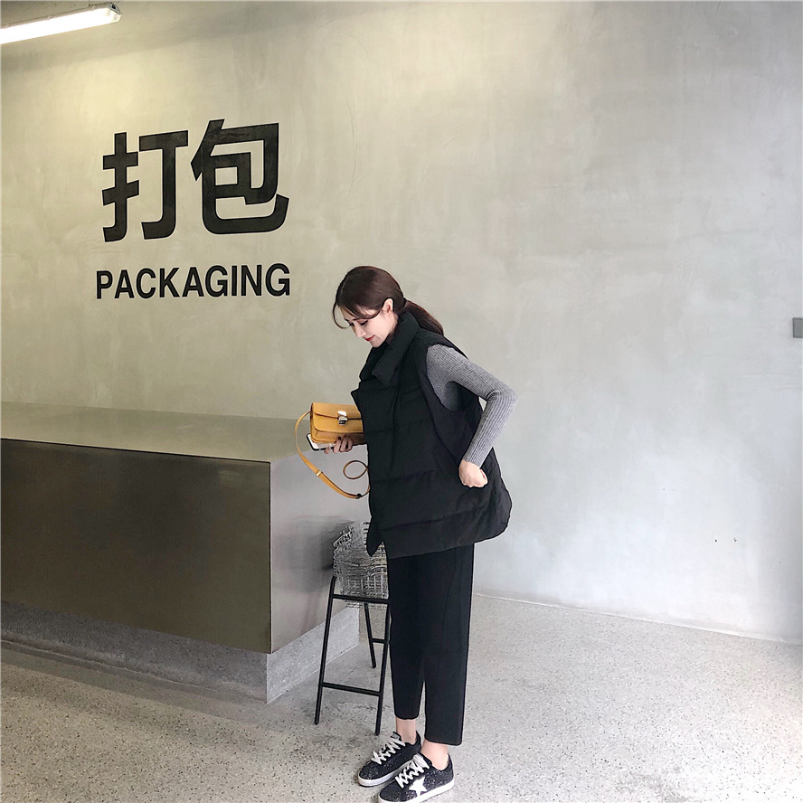 女神套裝秋冬oversize棉馬甲女+灰色針織衫+束腳顯瘦毛呢褲三件套