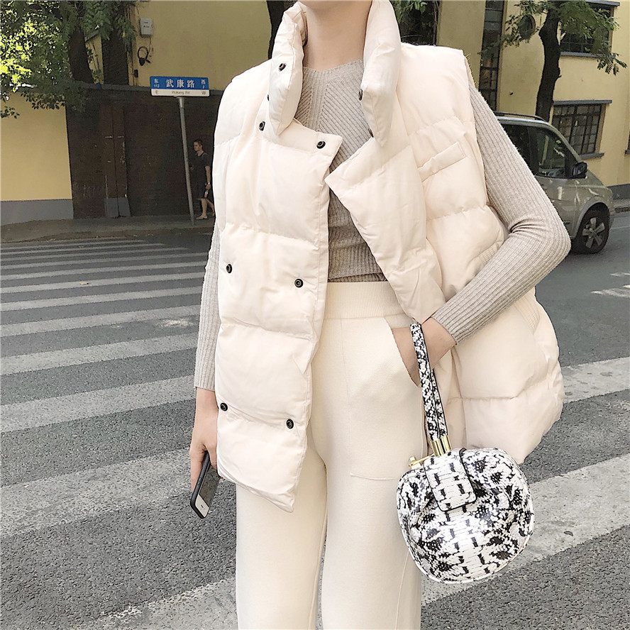/ 一字肩兩穿針織衫打底上衣+無袖加厚面包棉服馬甲+針織哈倫褲套裝