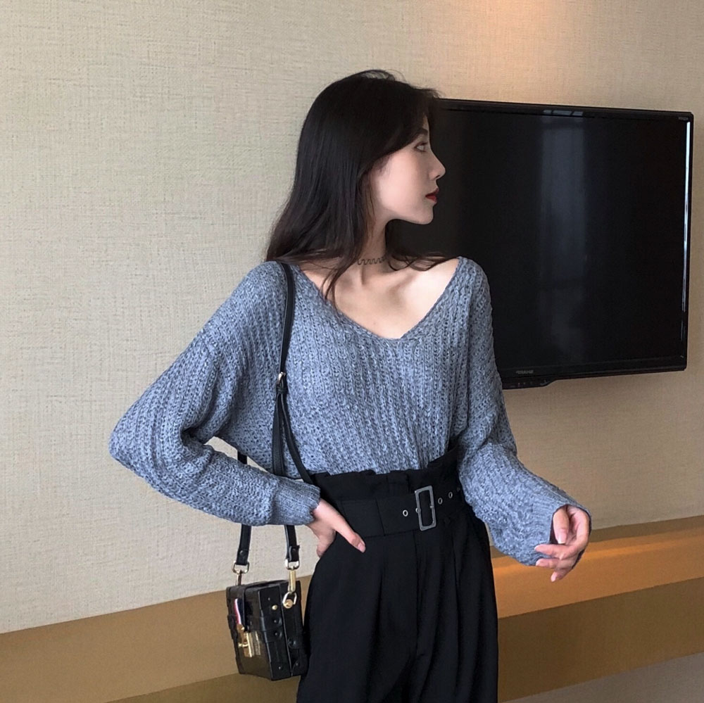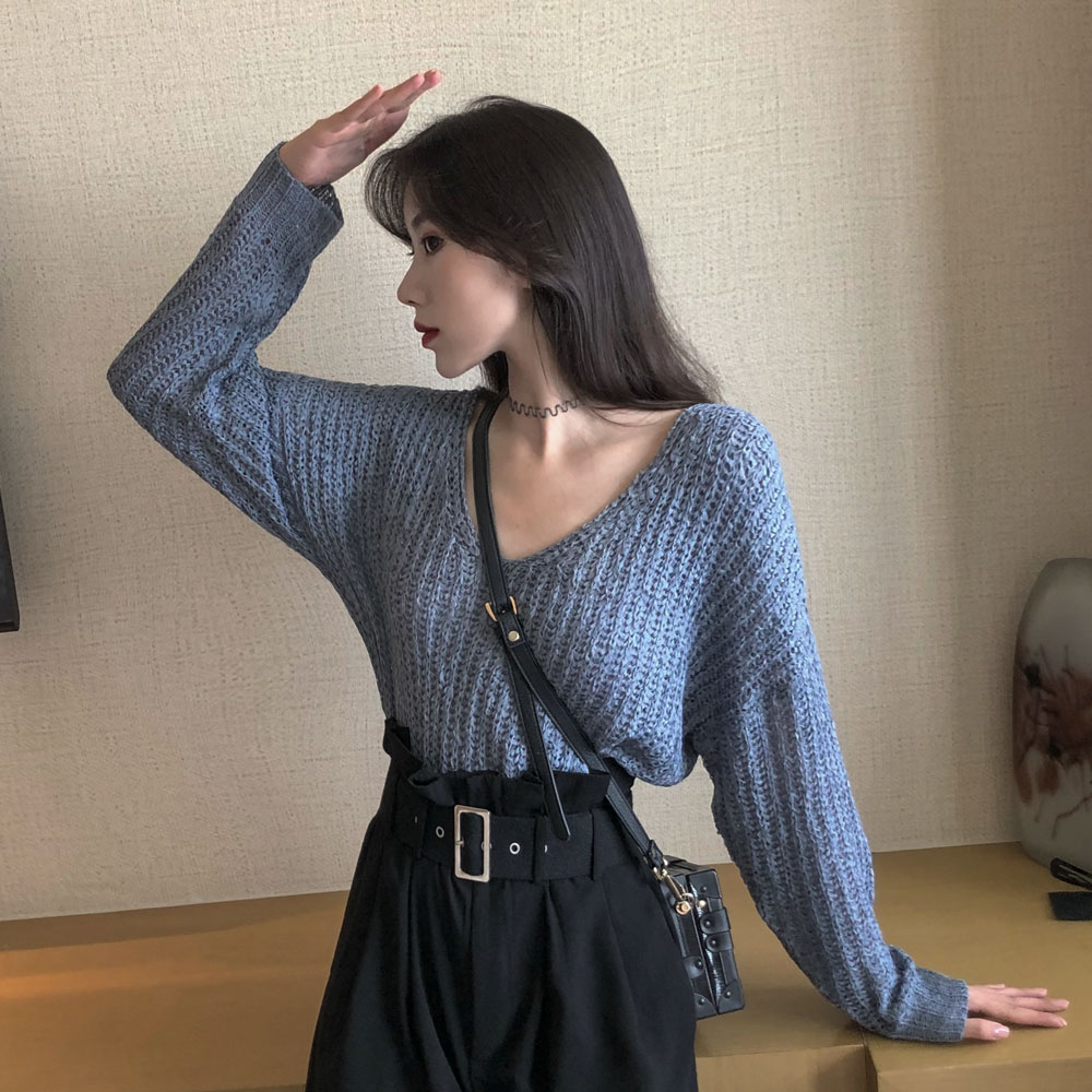 chic港風復古寬松長袖秋季新款韓版百搭慵懶氣質上衣薄針織衫毛衣