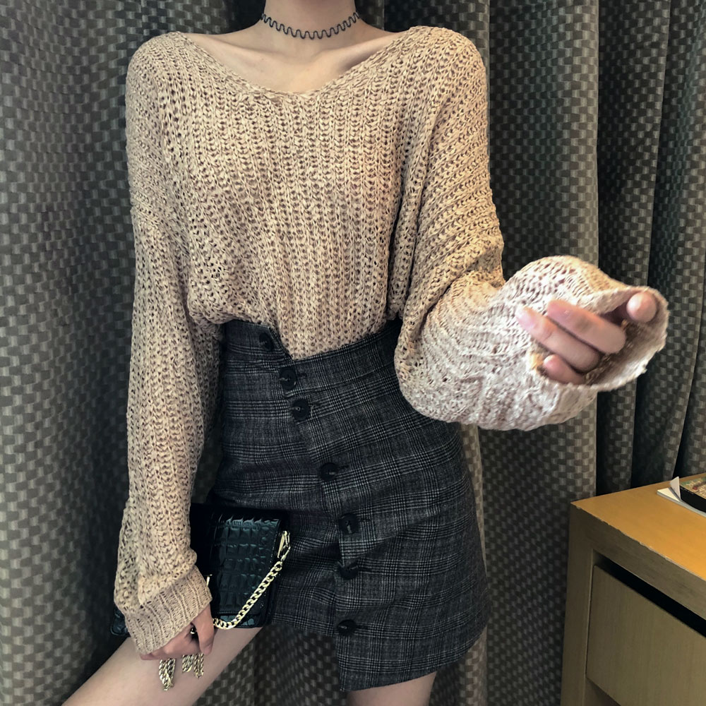 / chic港風復古寬松長袖秋季新款韓版百搭慵懶氣質上衣薄針織衫毛衣