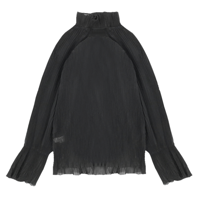 氣質雪紡衫女秋裝新款花邊領百褶網紗立領上衣花瓣袖內搭打底襯衫