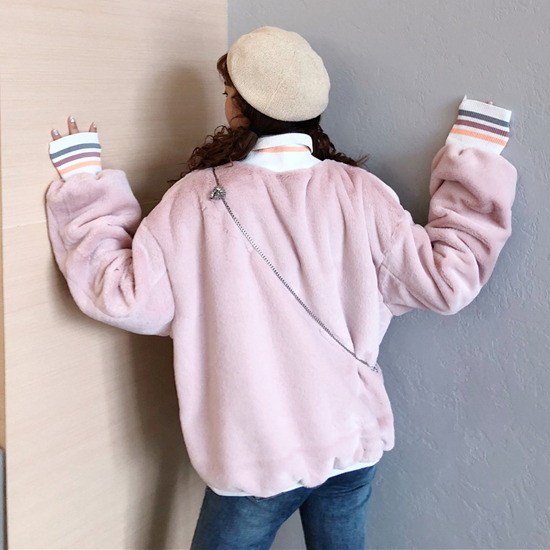 秋冬上衣女新款半高領寬松加絨保暖外套套頭長袖毛絨衛衣+小包包