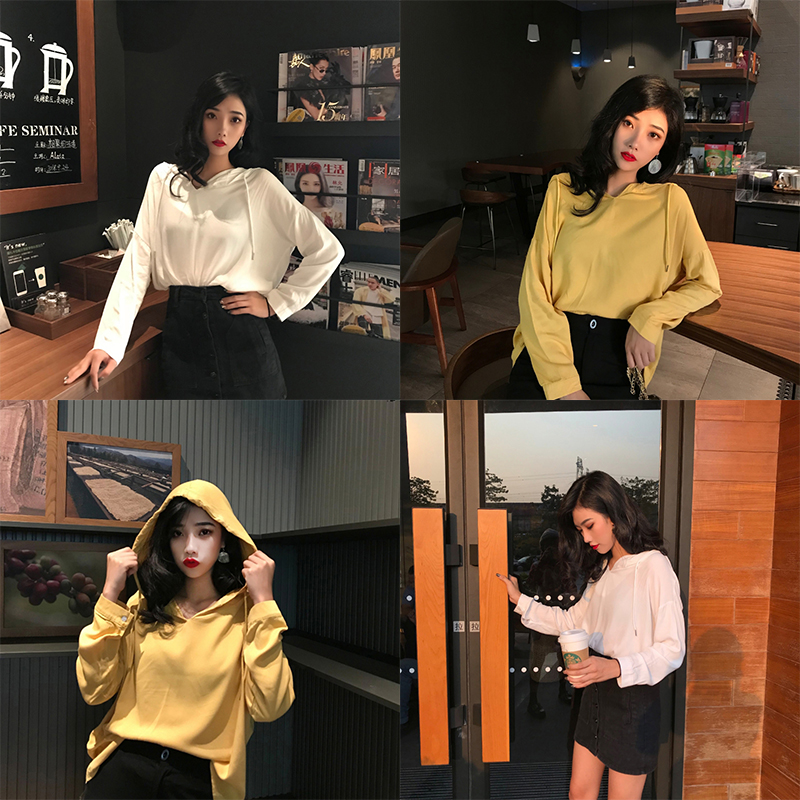 / 2018秋季韓版新款寬松顯瘦連帽抽繩慵懶港味套頭衛衣襯衫女上衣潮