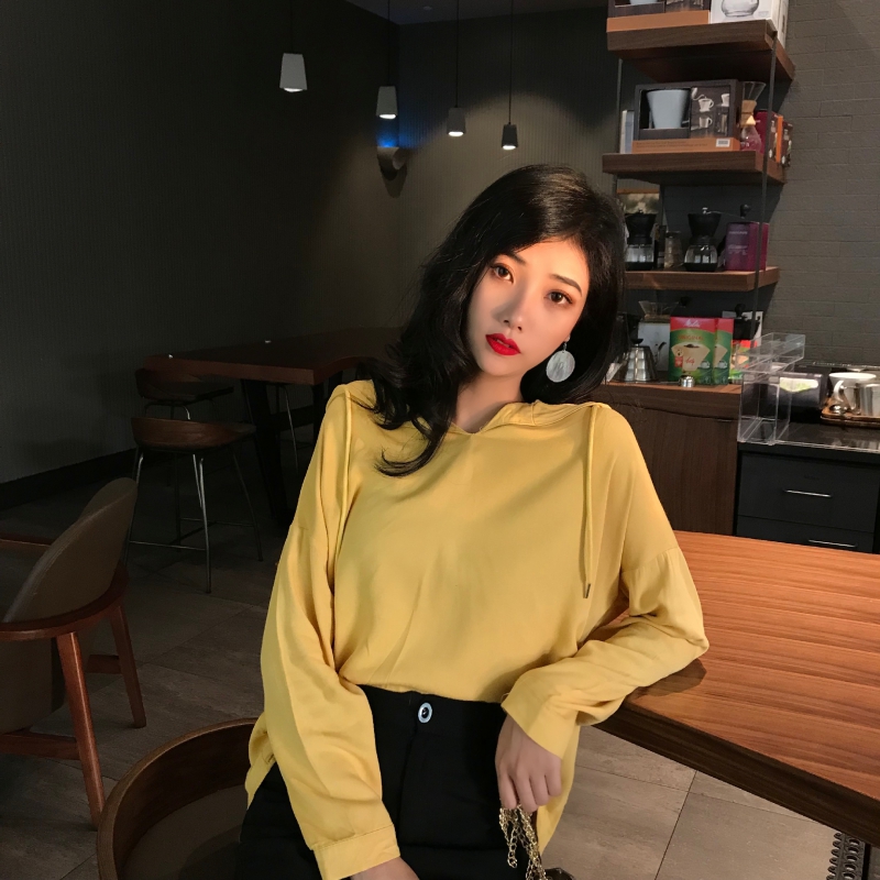 2018秋季韓版新款寬松顯瘦連帽抽繩慵懶港味套頭衛衣襯衫女上衣潮