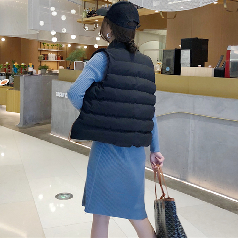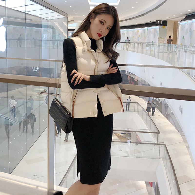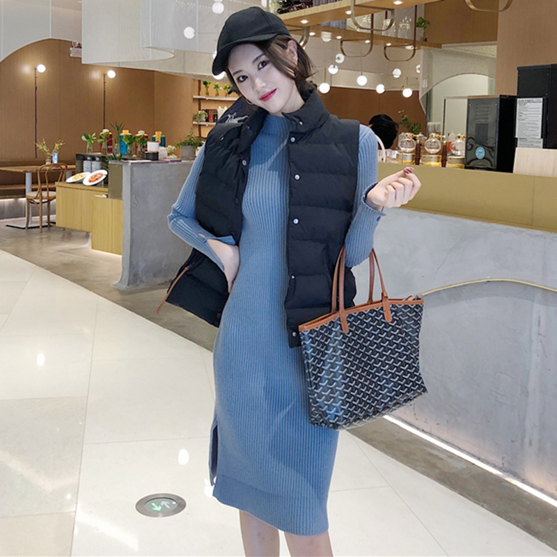 御姐套裝女秋冬新款時尚立領棉馬甲外套修身顯瘦打底針織連衣裙子