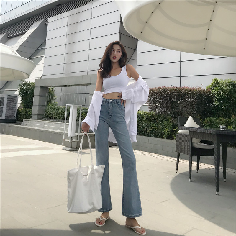 / 復古超高腰修身微喇叭顯高牛仔褲女春秋2018新款韓版顯瘦百搭長褲