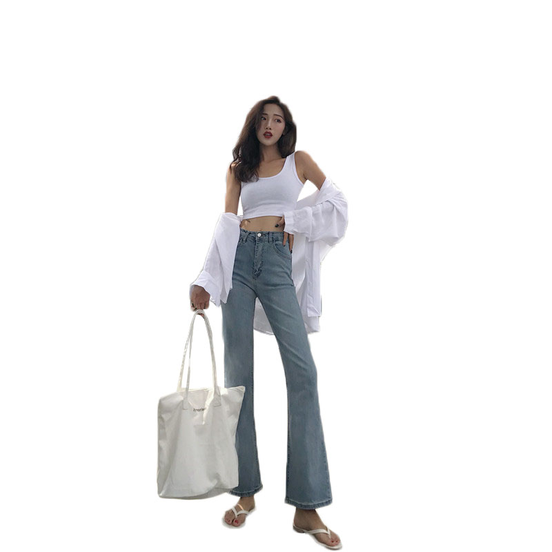 復古超高腰修身微喇叭顯高牛仔褲女春秋2018新款韓版顯瘦百搭長褲