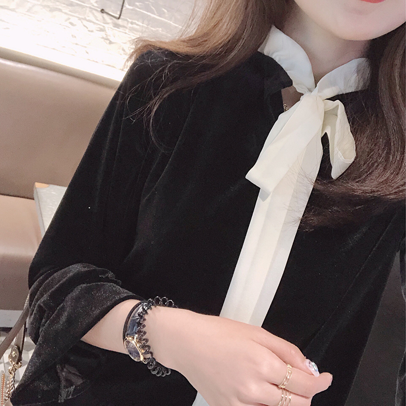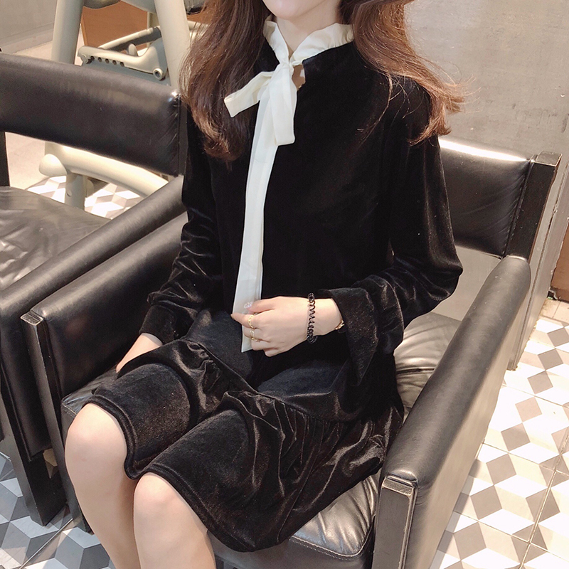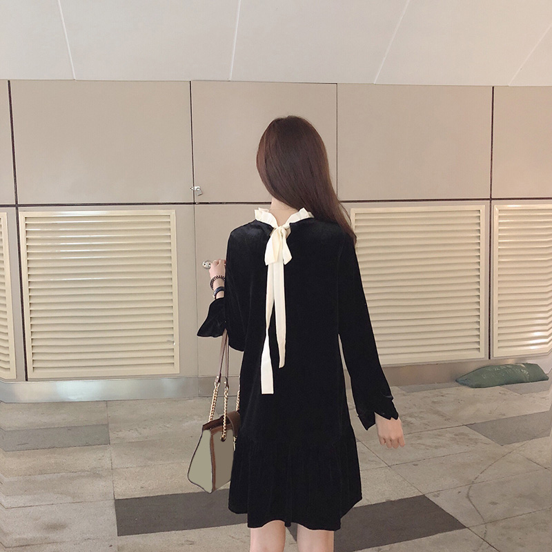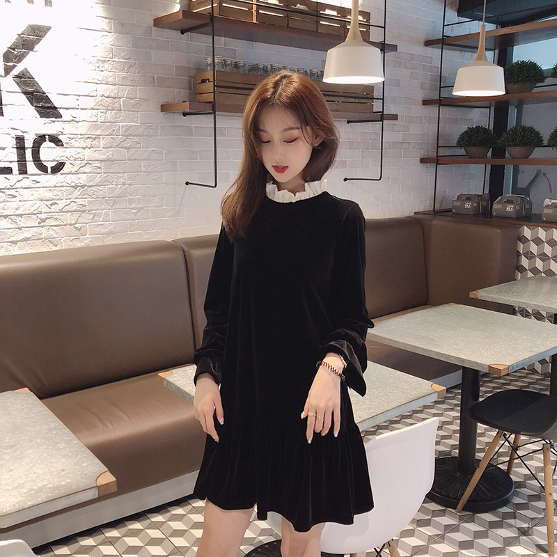 / 小清新時尚連衣裙女秋新款韓版寬松百搭中長款長袖套頭絲絨打底裙