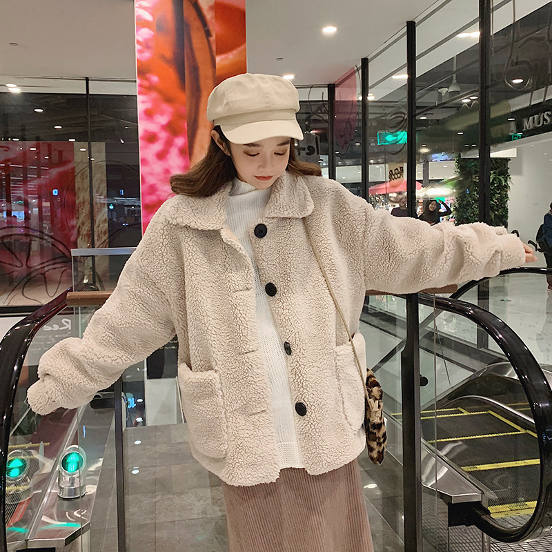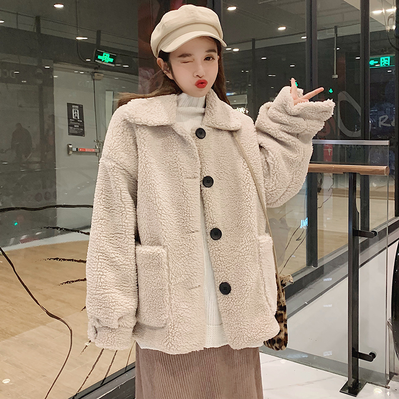 加厚仿羊羔毛棉襖2018冬季女裝新款學院風中長款棉衣寬松長袖外套
