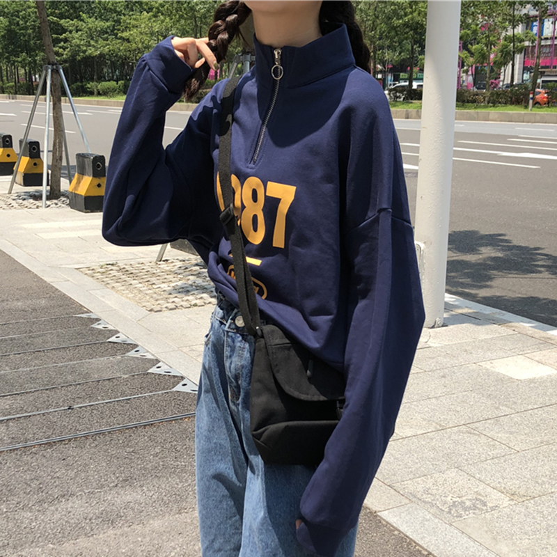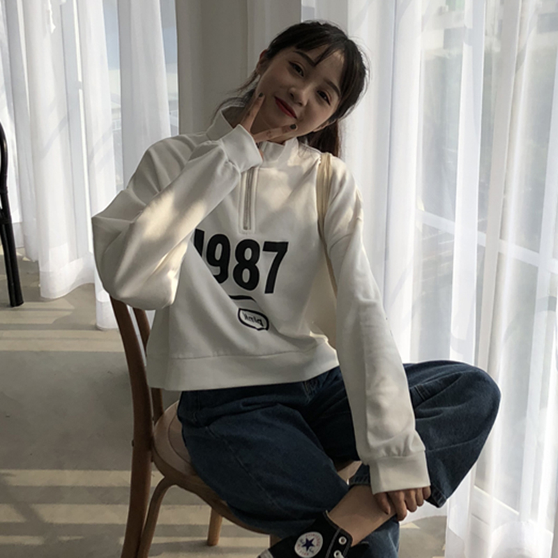 / 運動休閑長袖印花衛衣秋裝女2018新款韓范港風學生時尚寬松短上衣
