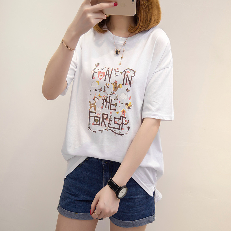 短袖上衣女夏新款女裝卡通白色t恤女寬松韓版體恤小衫百搭潮