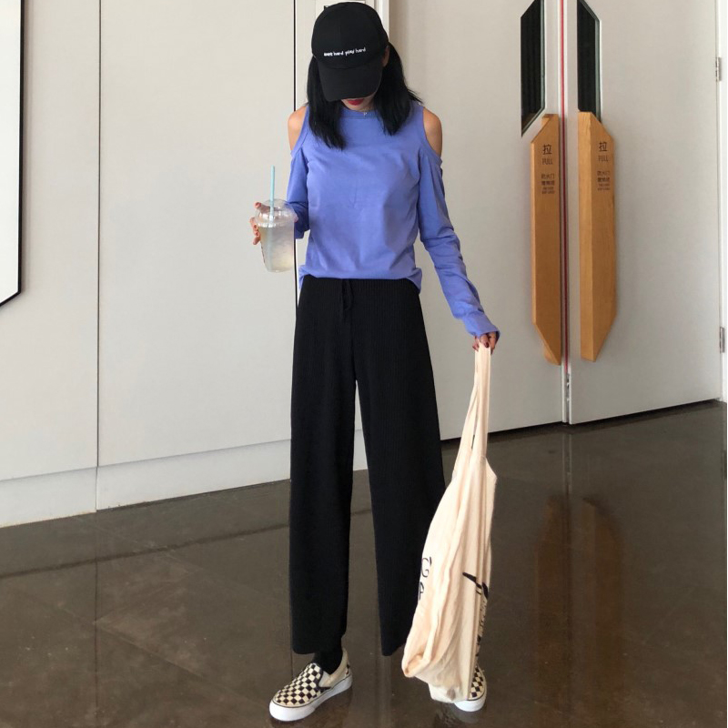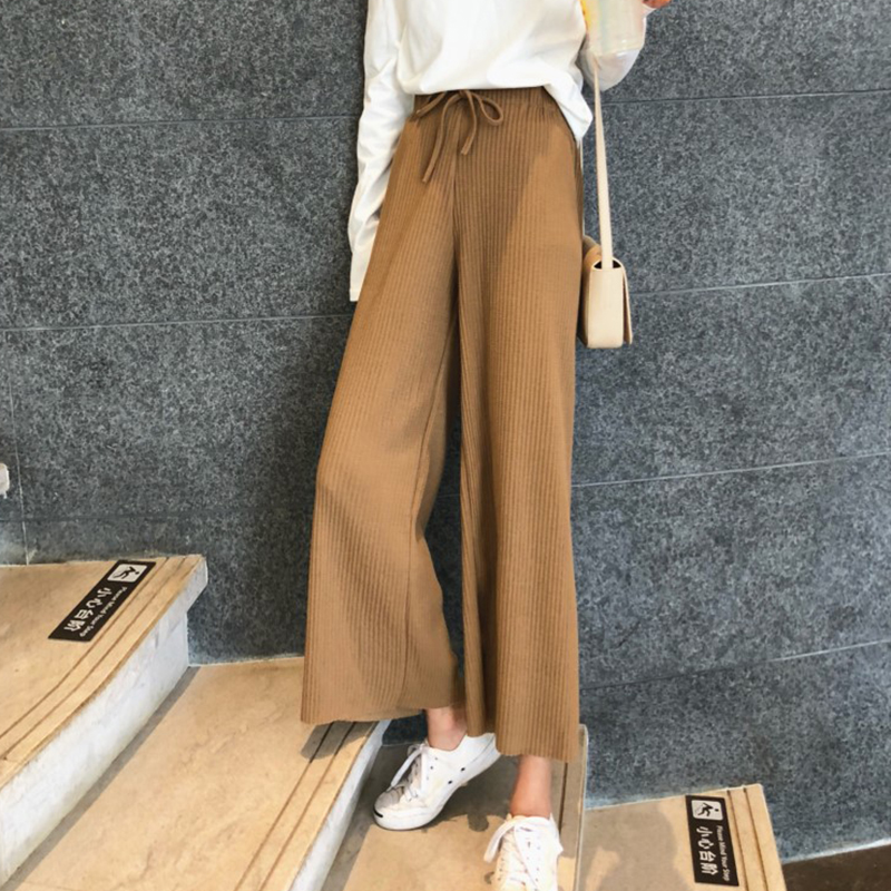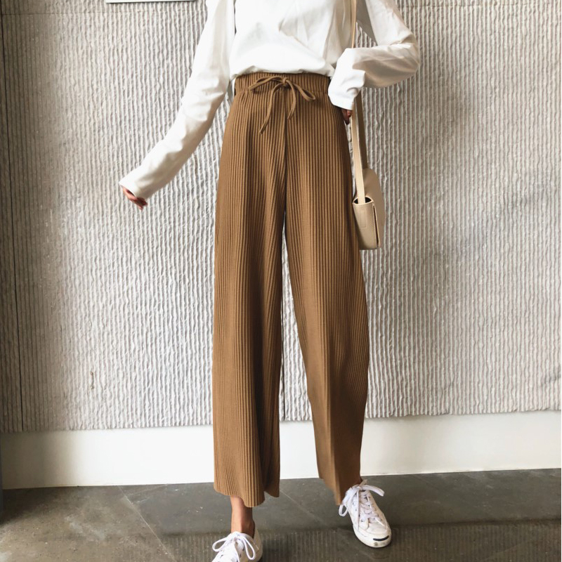 / 垂感闊腿褲女秋裝2018新款休閑高腰系帶寬松壓褶黑色直筒九分褲子