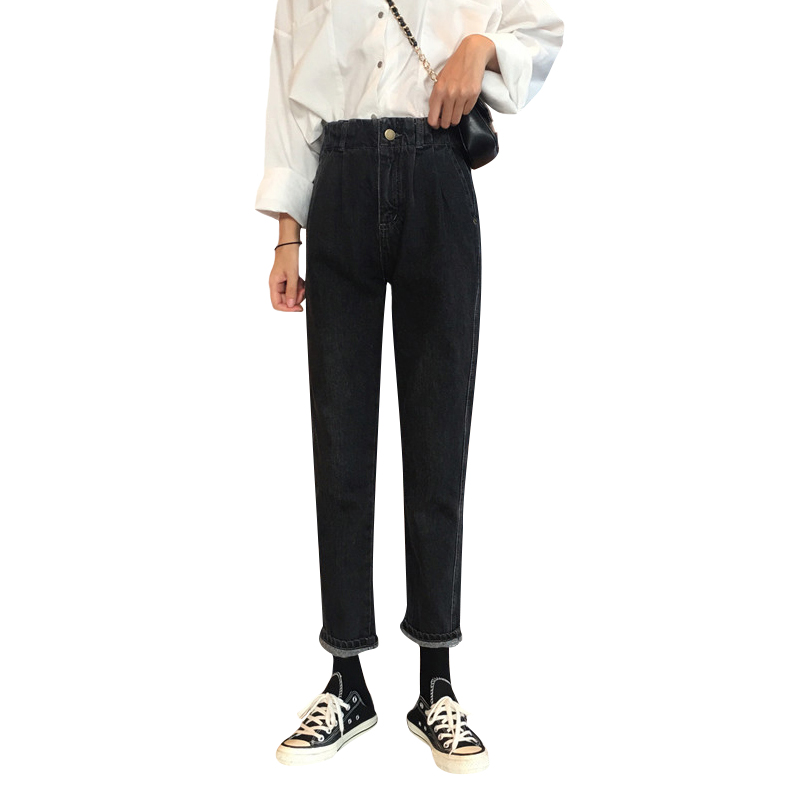 / 秋冬女裝韓版復古chic寬松百搭牛仔褲高腰加厚直筒褲長褲學生褲子