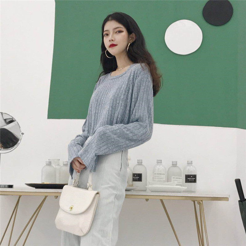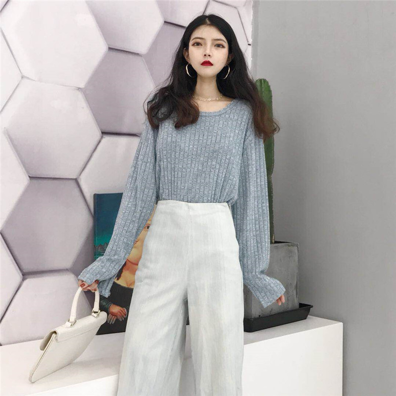 韓版女裝百搭修身顯瘦開叉長袖T恤純色防曬罩衫2018秋裝新款上衣