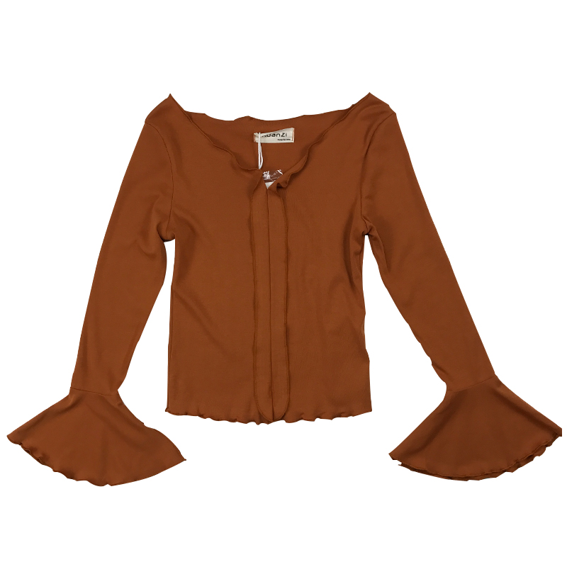 黃色喇叭袖打底衫v領修身上衣女秋2018新款女裝白色荷葉領長袖t恤