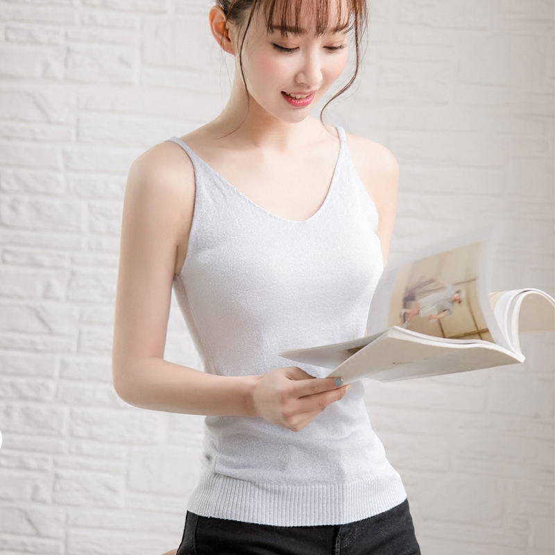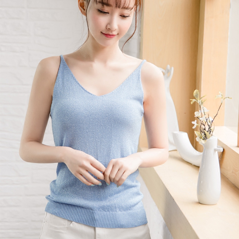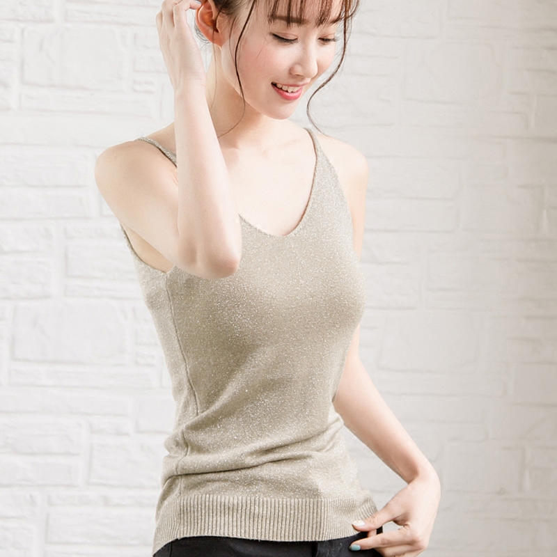 / 春夏季新款修身性感v領針織亮絲打底吊帶背心女夏短款大碼