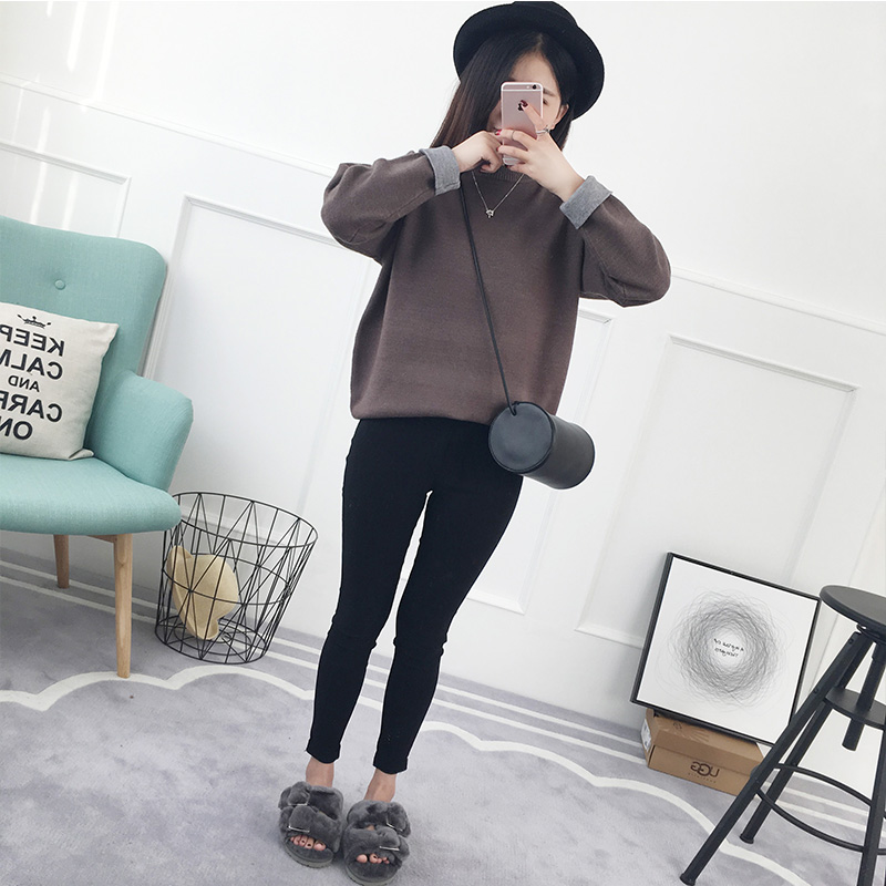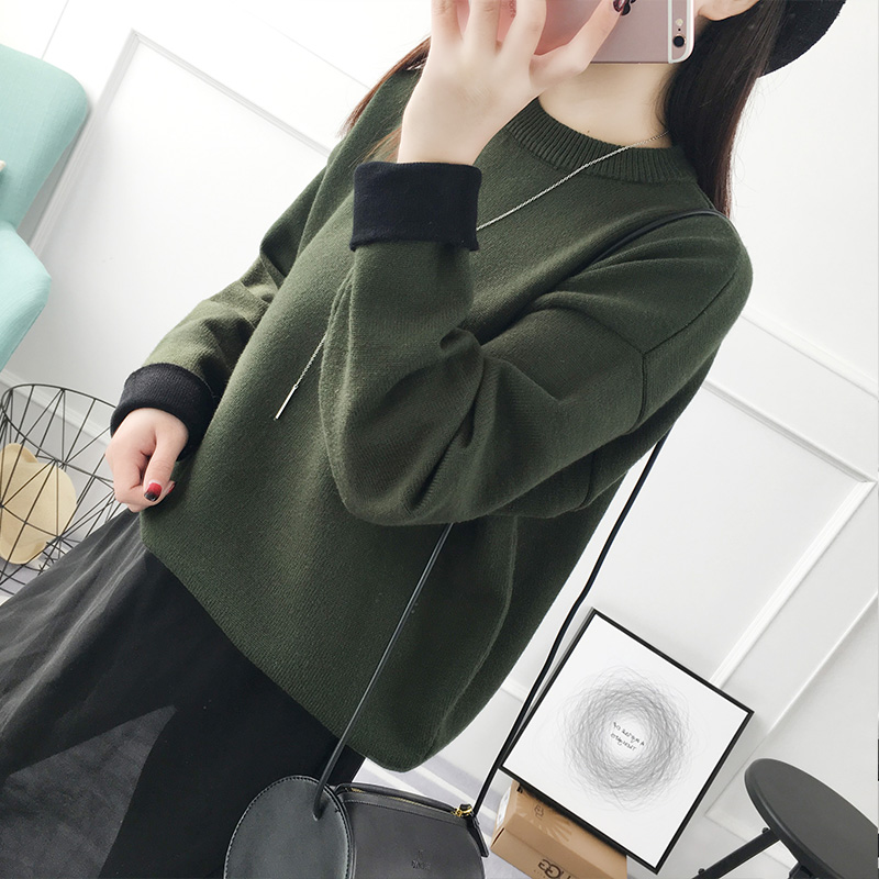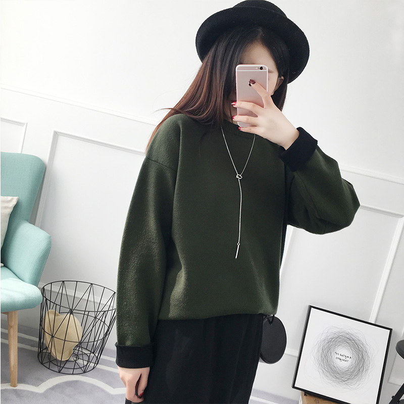 / 套頭毛衣女秋冬韓版寬松純色針織衫圓領外套厚衣服女裝新款潮