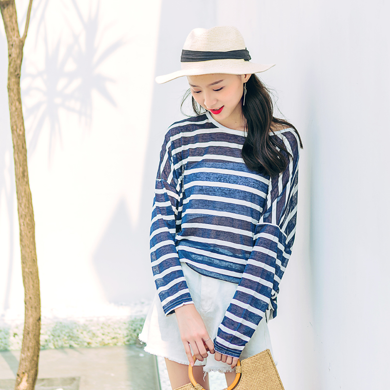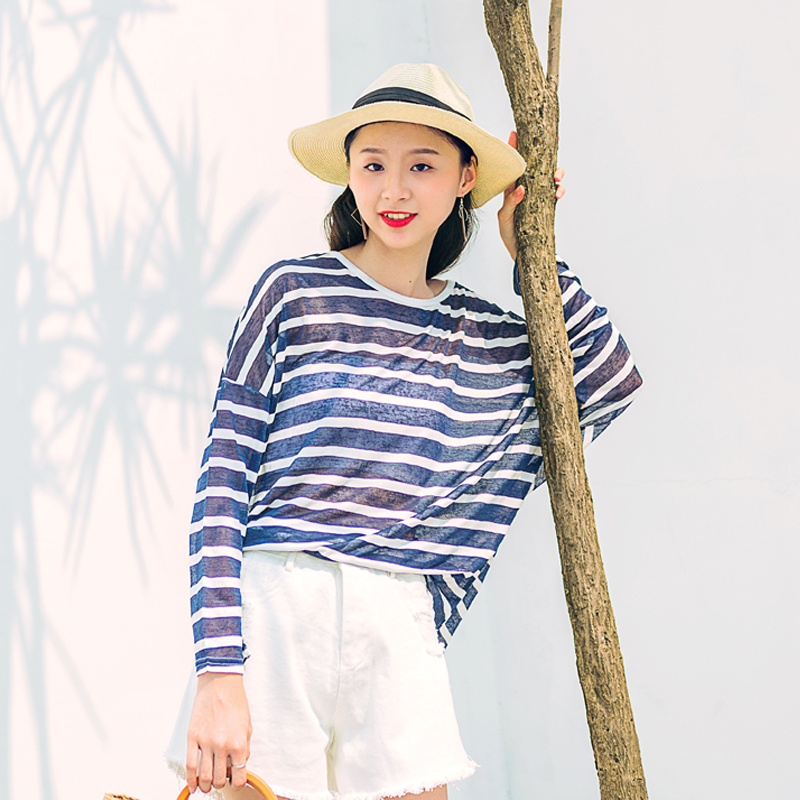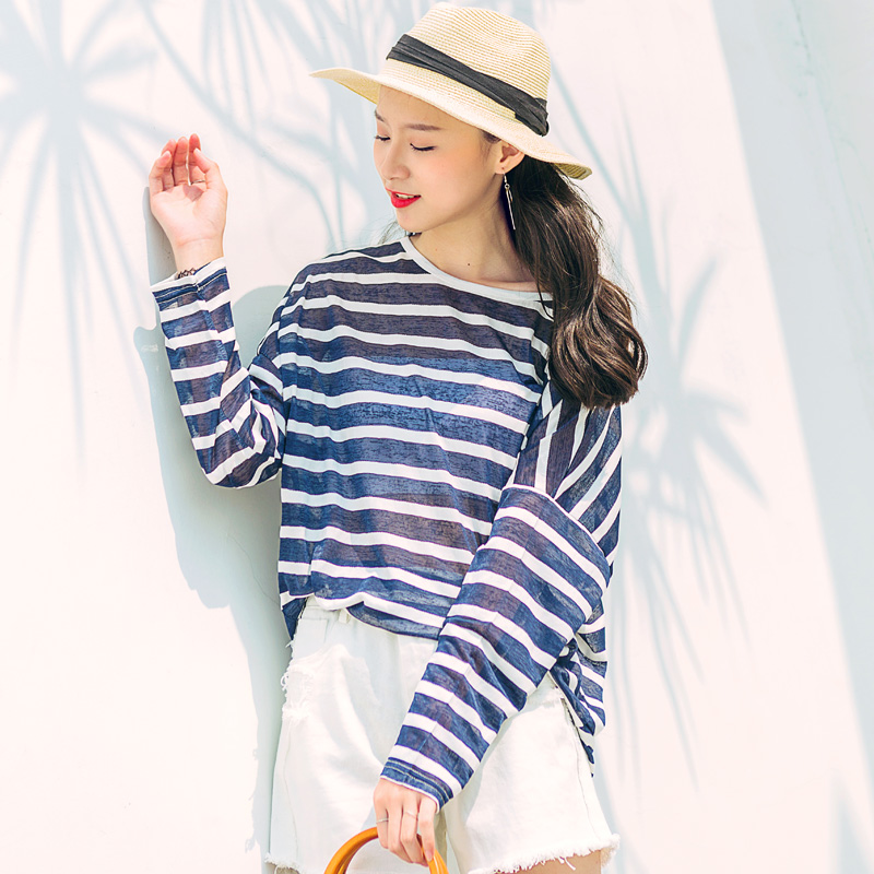 條紋元素,長袖防曬,寬松款,這幾個元素齊備