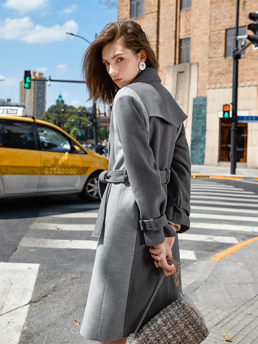 MG小象冬季收腰毛呢外套女中長款寬松韓版新款2018流行呢子大衣潮