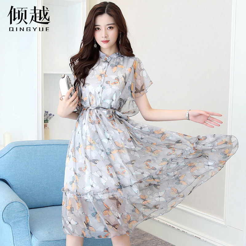 / 2017夏季短袖中長款韓版花色氣質連衣裙碎花小清新雪紡連衣裙女潮