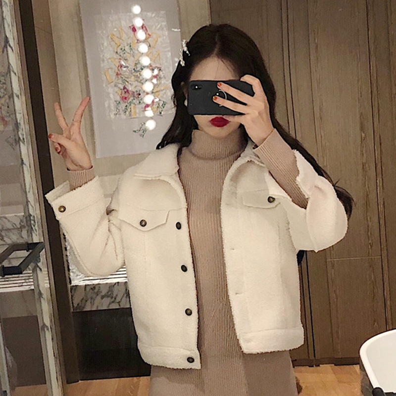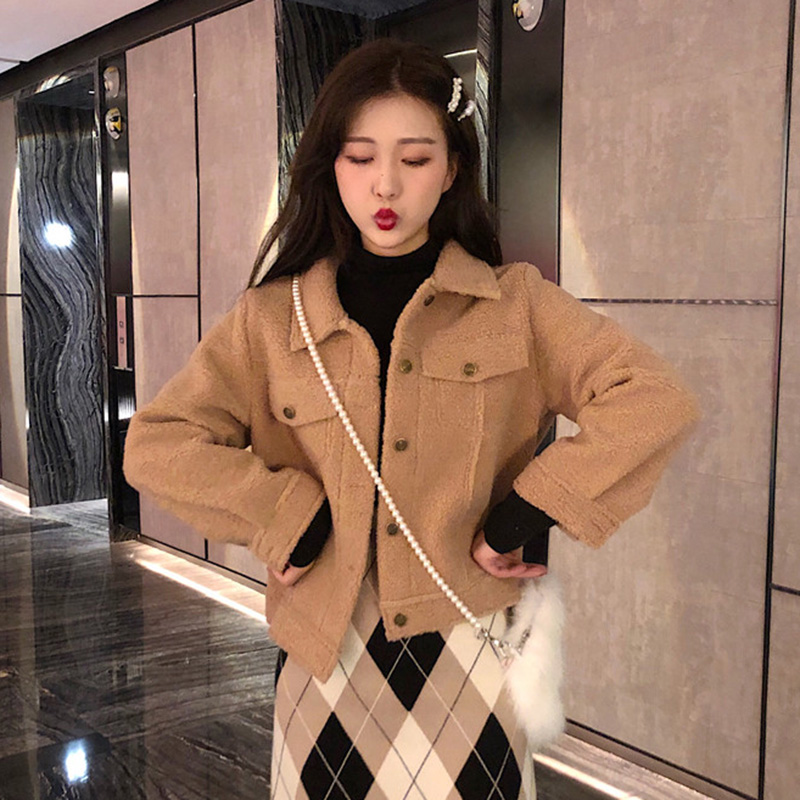 秋冬女裝2018新款韓版chic風寬松短款羊羔毛外套學生休閑夾克開衫