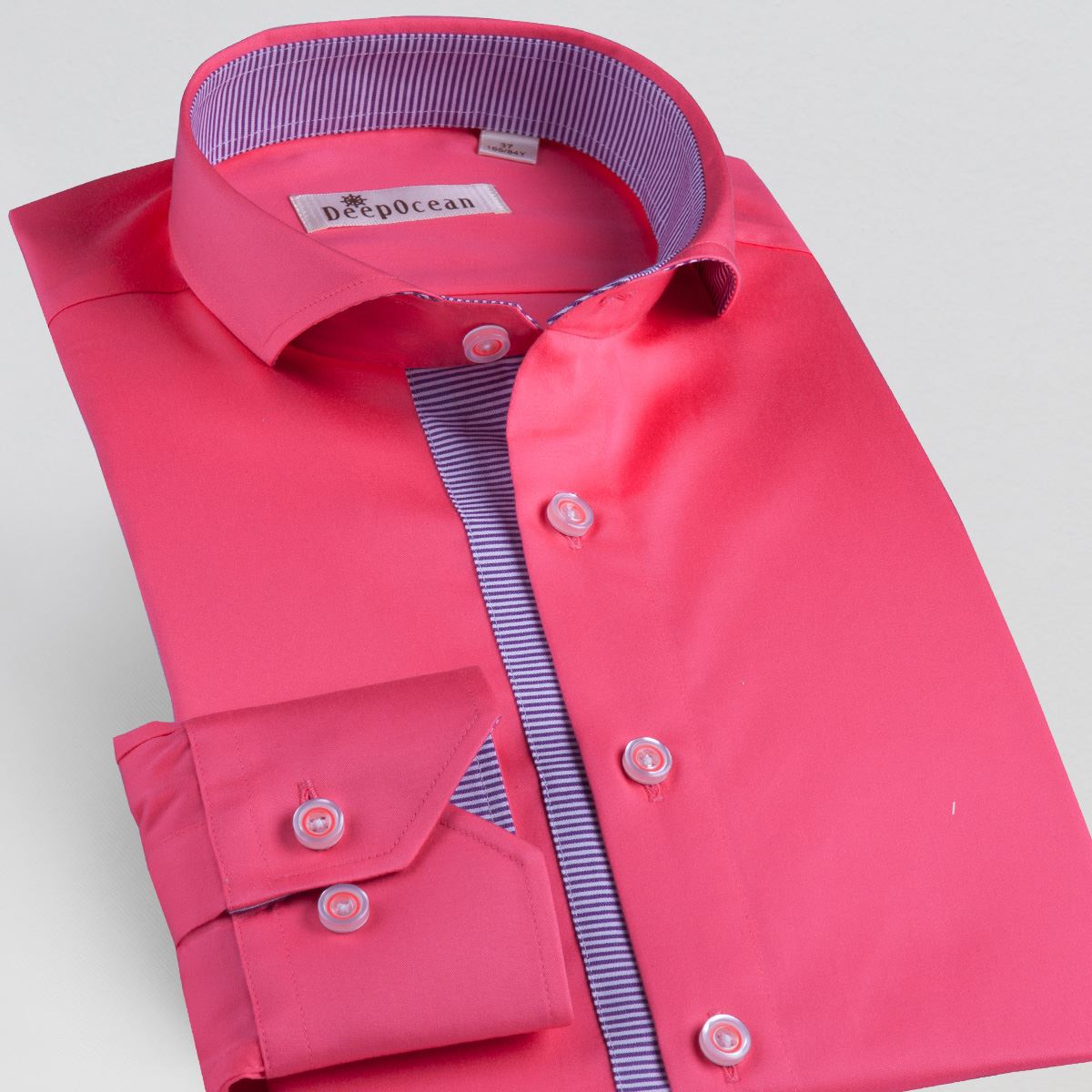 一字領溫莎領門襟條紋橫拼接時尚純色絲光棉長袖襯衫男士休閑襯衣