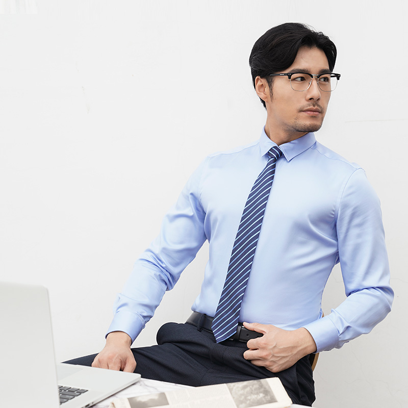 / 小領襯衫男長袖襯衣男士寸純棉絲光棉青年商務正裝修身韓版潮休閑