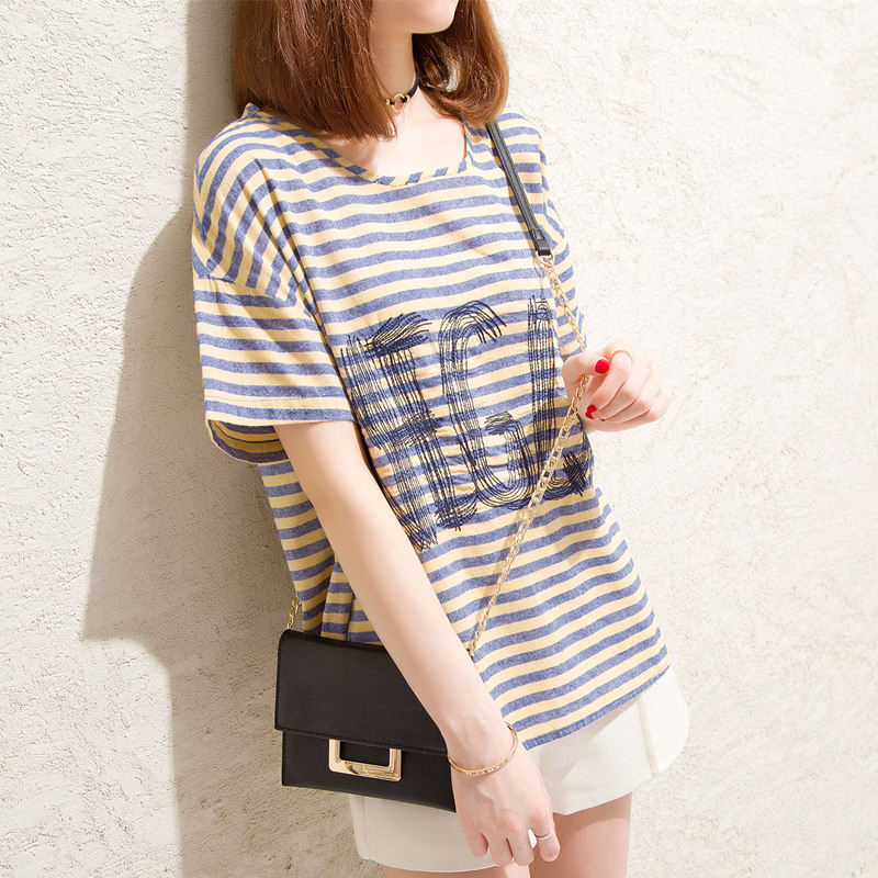 條紋t恤女韓版復古體恤衫短袖寬松小清新心機上衣女夏裝新款
