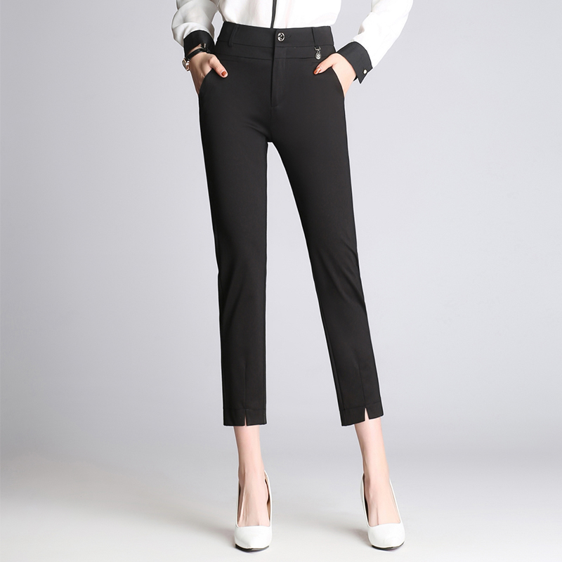 / 夏季小喇叭褲女開叉長褲韓版春裝新款女褲夏季薄款九分彈力微喇褲