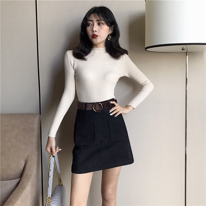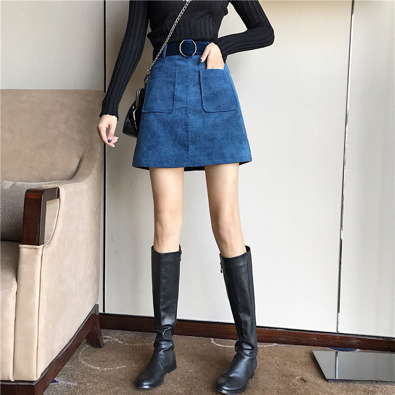 高腰A字裙2018新款韓版燈芯絨半身裙秋冬季復古百搭短裙包臀裙女