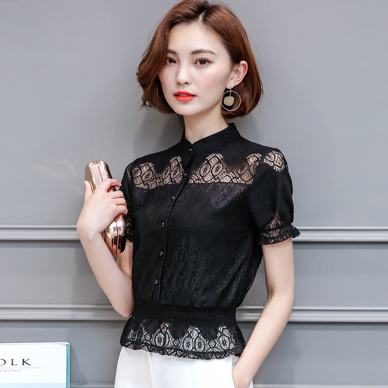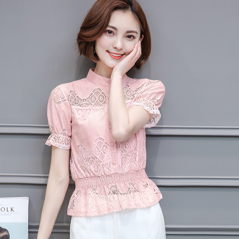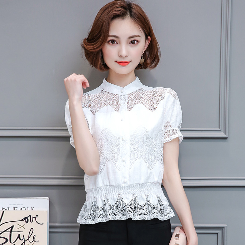 / 春裝2017新款夏季女裝大碼雪紡衫短袖上衣小衫寬松蕾絲短款學