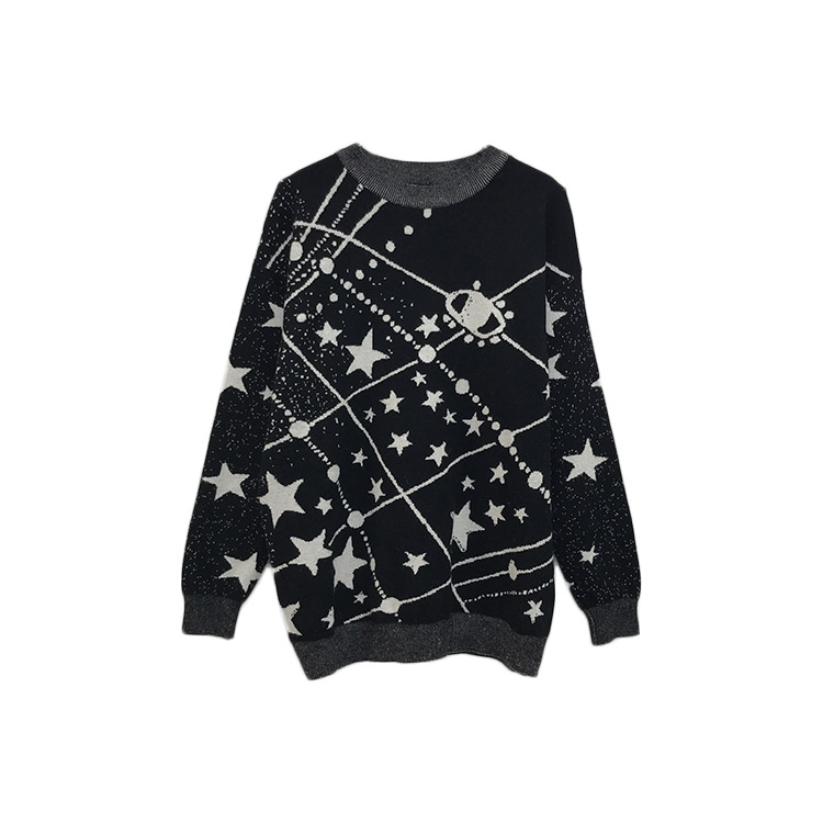 秋冬毛衣外套女韓版2018新款星空套頭圓領寬松顯瘦遮臀毛衣衛衣女