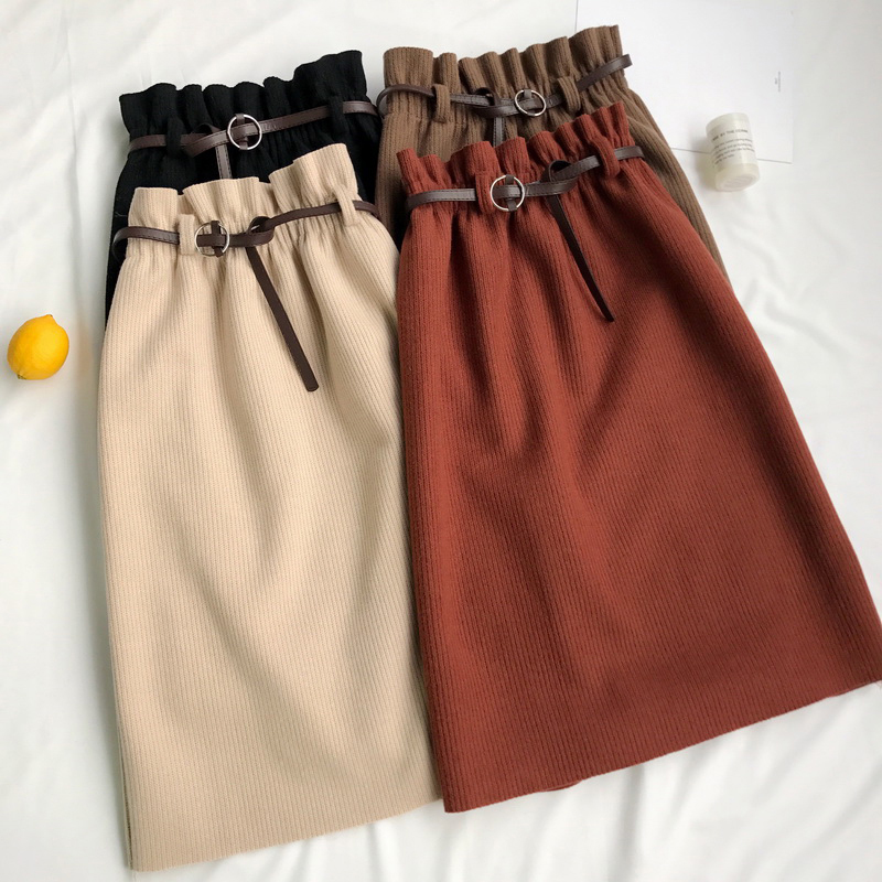 / 秋裝女2018新款韓版松緊高腰開叉毛呢半身裙子學生簡約休閑A字裙