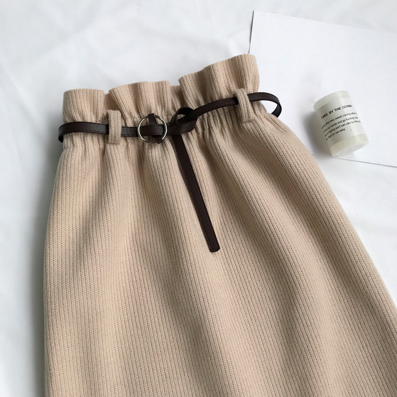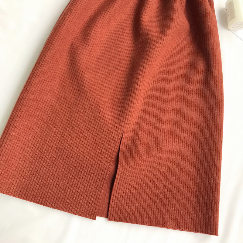秋裝女2018新款韓版松緊高腰開叉毛呢半身裙子學生簡約休閑A字裙