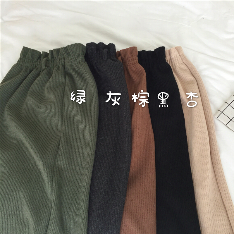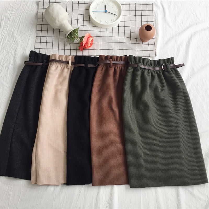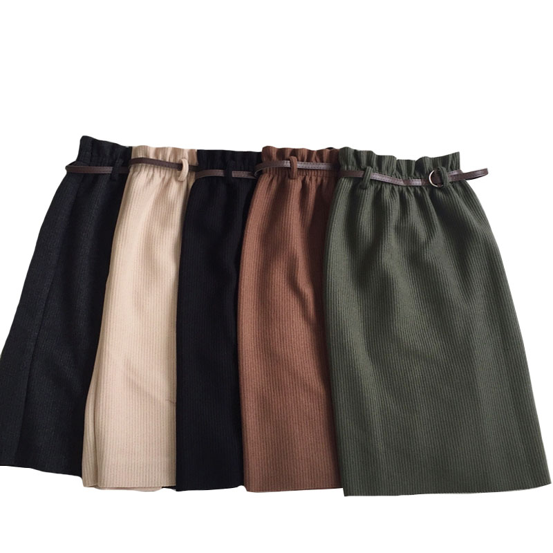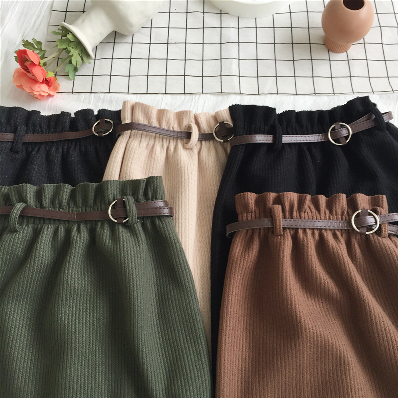 可可里小姐~韓板毛呢松緊腰開叉半身裙(送皮帶)