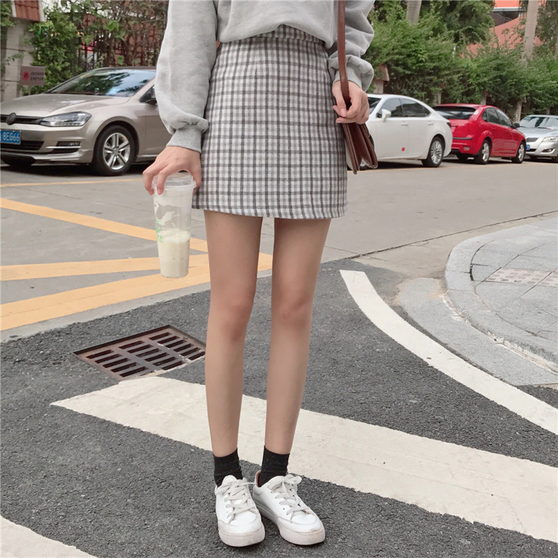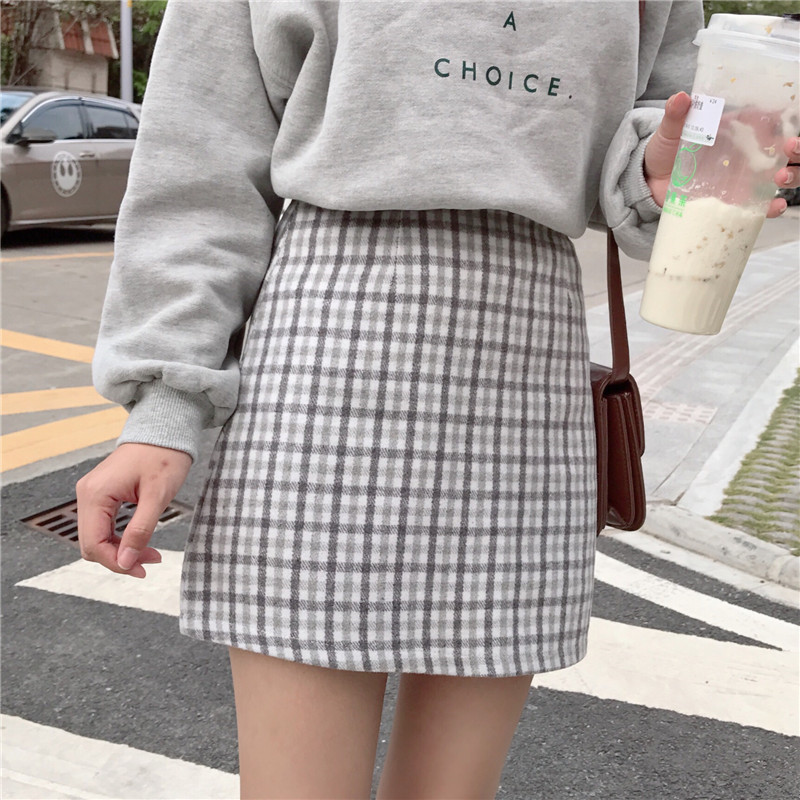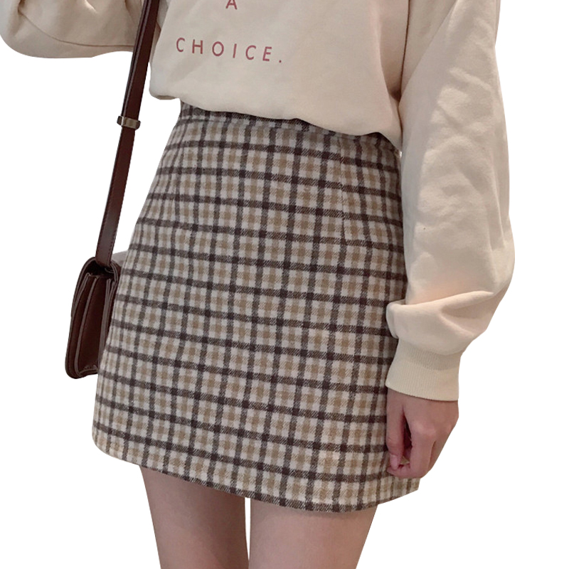 2018新款秋冬女裝韓版寬松毛呢高腰格子半身裙A字裙短裙學生裙子