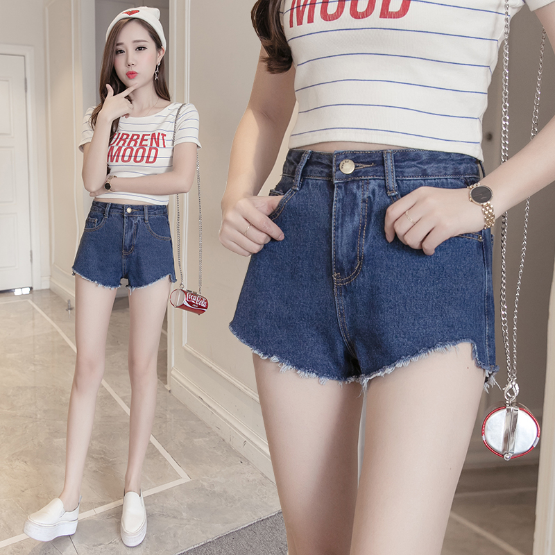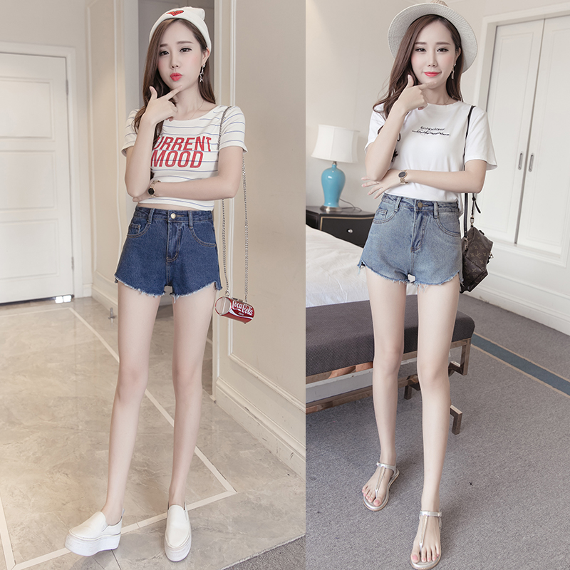 / 春季新款韓版休閑女裝高腰顯瘦毛邊百搭修身牛仔短褲熱褲潮