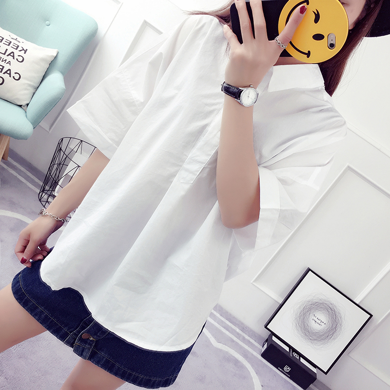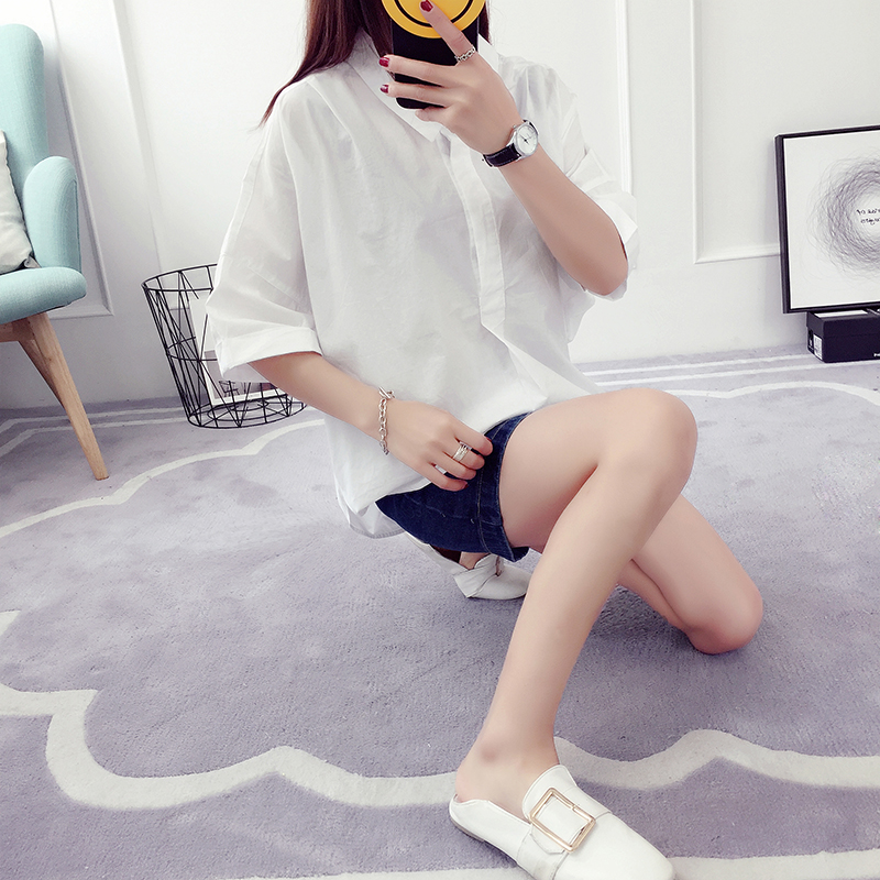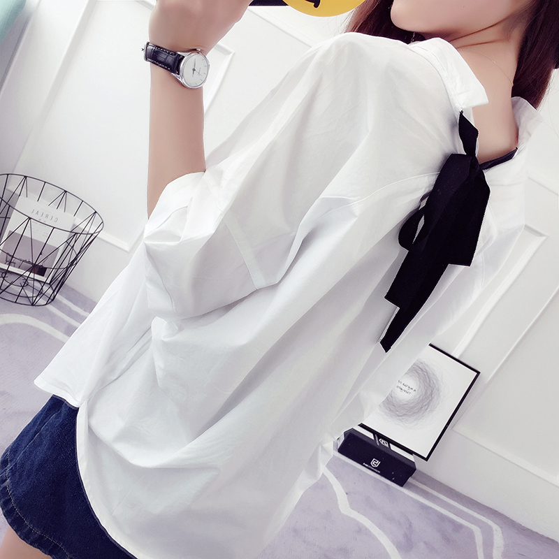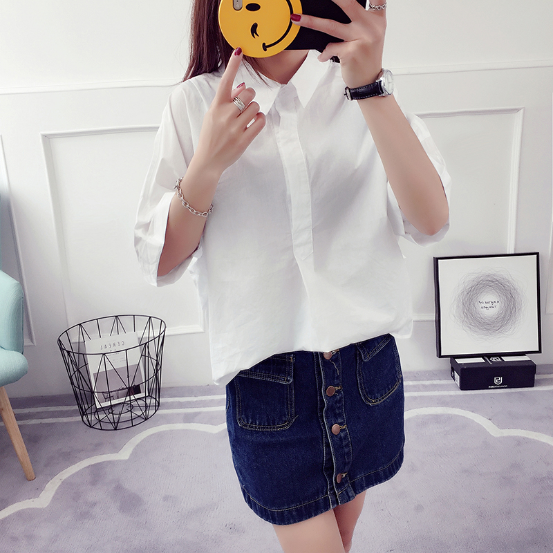 / 白襯衫女春秋新款潮百搭韓版學生中長款韓范寬松學院風短袖夏