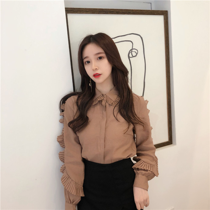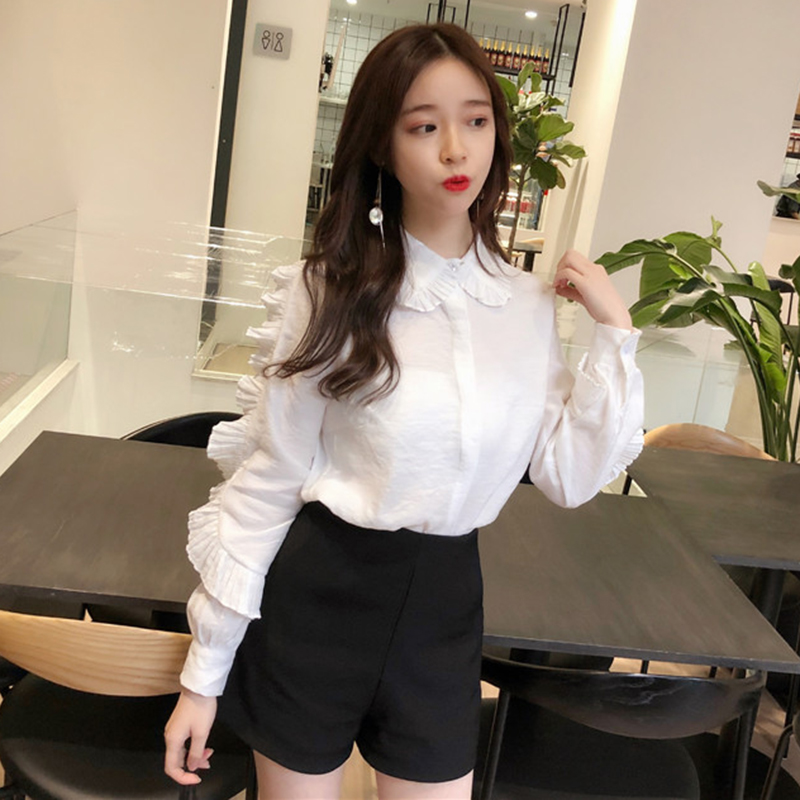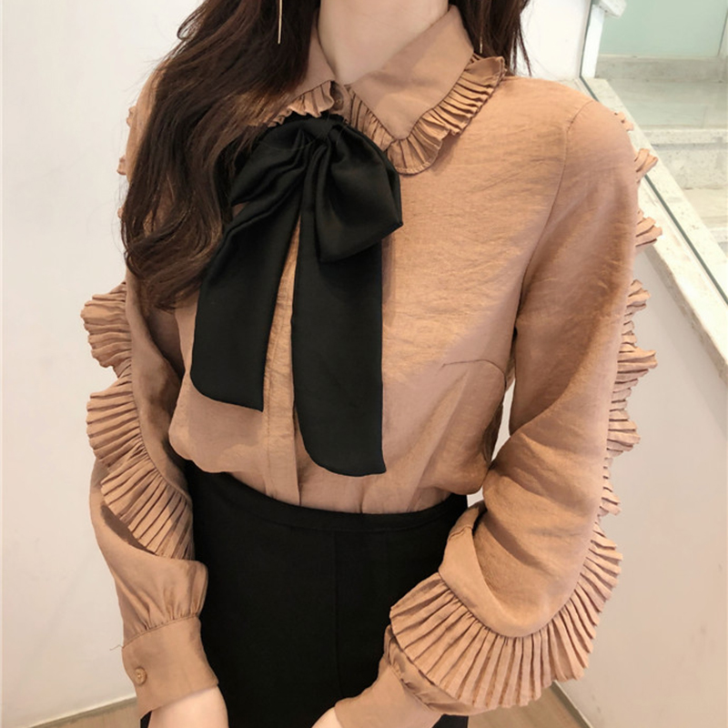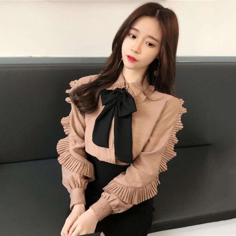 / 少女甜美蝴蝶結襯衫女韓版寬松娃娃領白襯衣2018秋裝新款長袖上衣