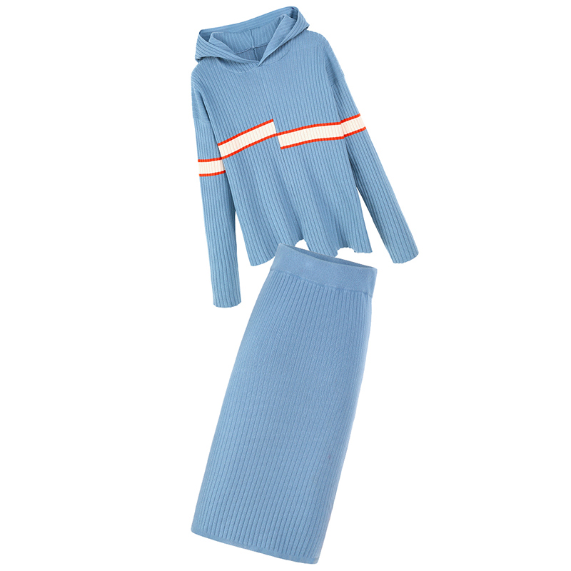 MG小象連帽針織衫女秋冬高腰包臀半身裙2018新款寬松套頭條紋毛衣